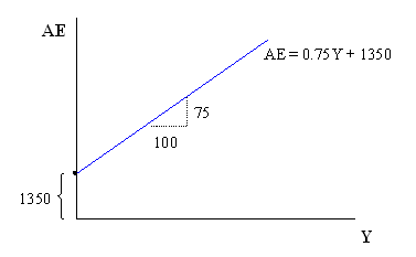 It is this equation that we’ll use to represent aggregate expenditures. On a graph, we have something that looks very similar to the consumption equation graph above. The AE graph appears as follows: